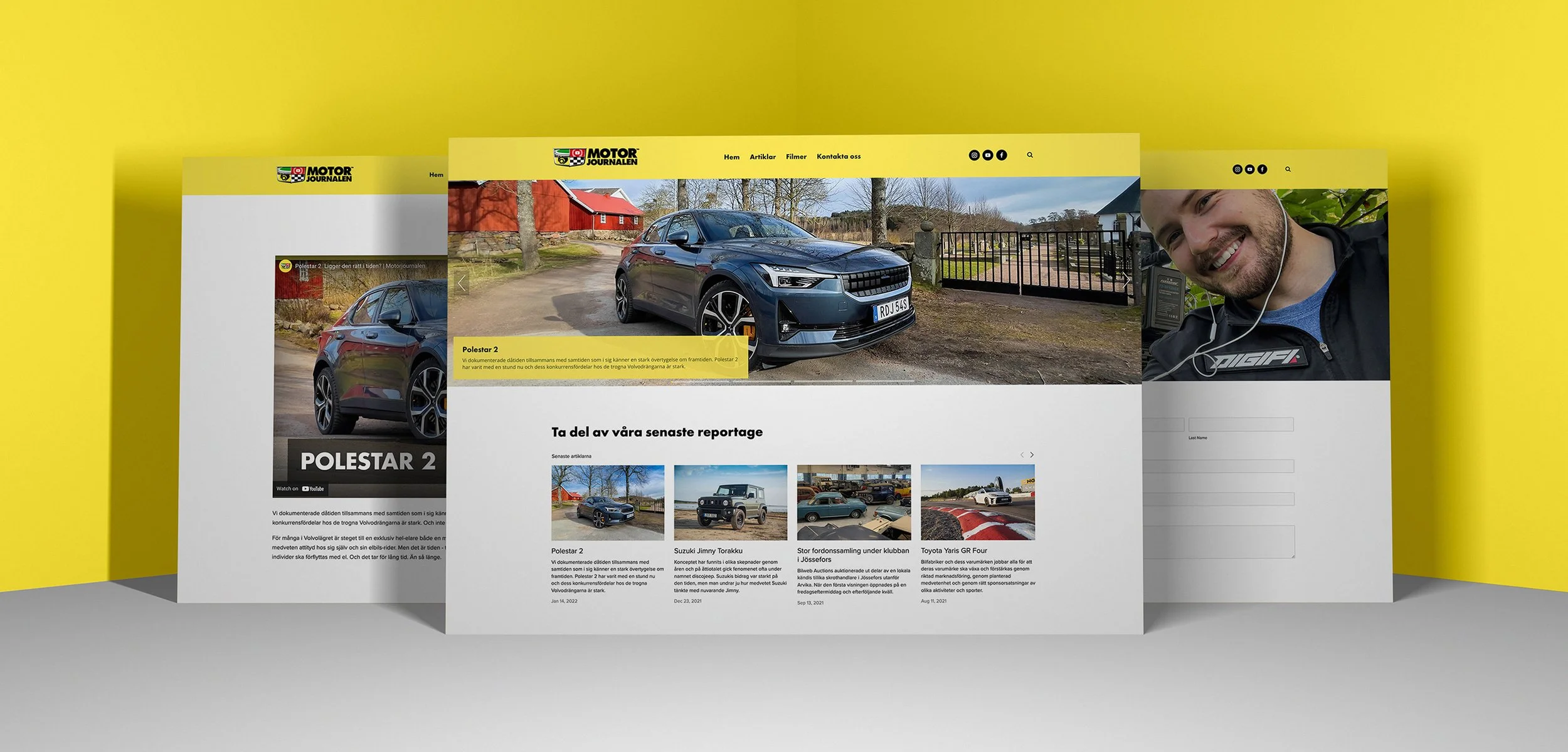 Jättekul att få möjligheten att digitalisera och skapa en hemsida för motorjournalen. Tanken var att sätta upp något enkel som fungerar smidigt att uppdatera och administrera. Designen ska andas Motorjournalen Play och man ska se tydiligt den grafiska profilen från YouTube kanalen.