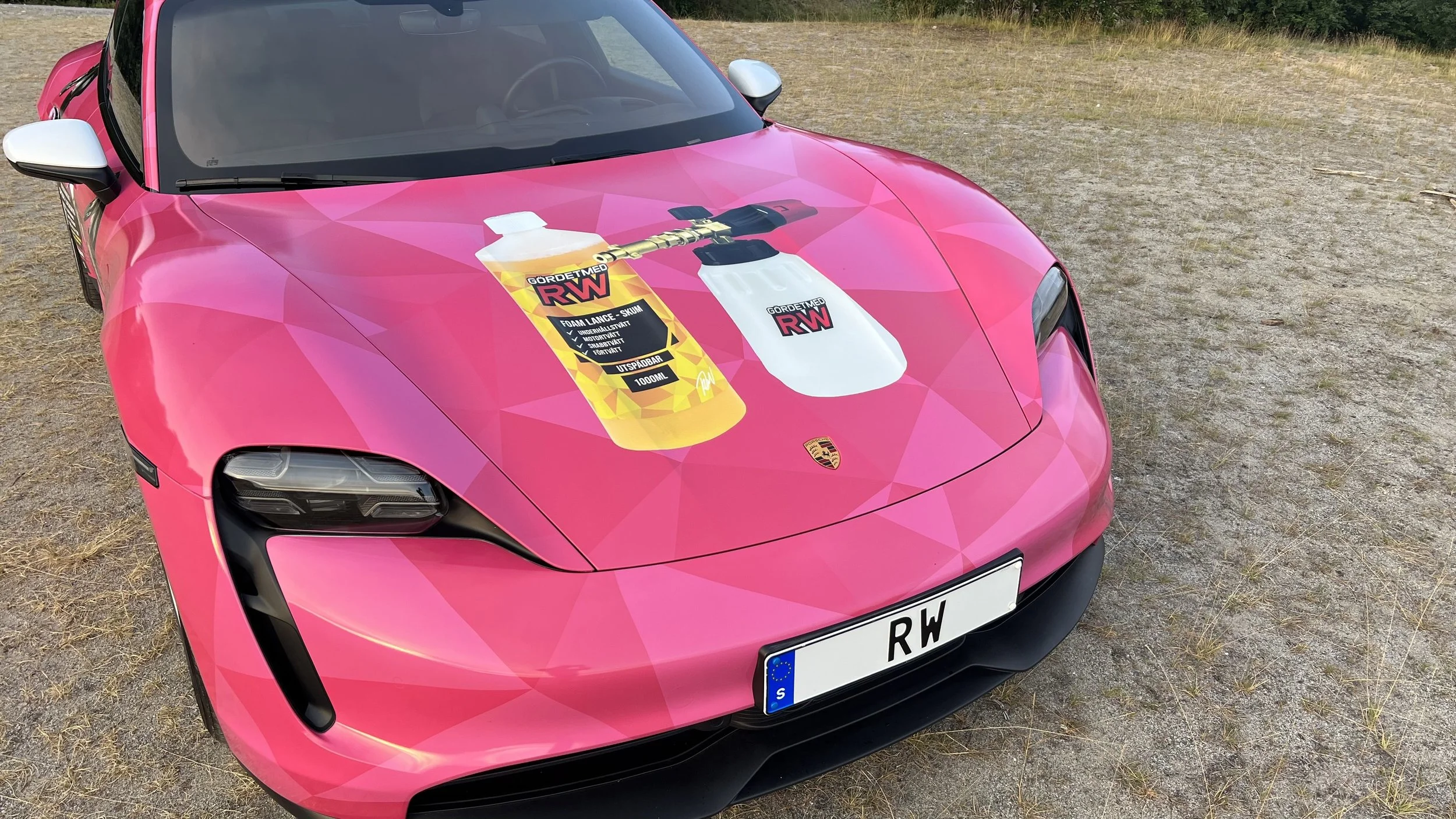 När man ändå var på plats fick vi även möjligheten att ta fram en ny wrapdesign till Robins Porsche Taycan. Som sedan levererades till WrapChamp för foliering. Robin ville ha något som man inte kunde missa och även visade upp produkterna. Personligen så tycker jag att vi lyckades! Man ser den på vägen om man säger så! 🥳